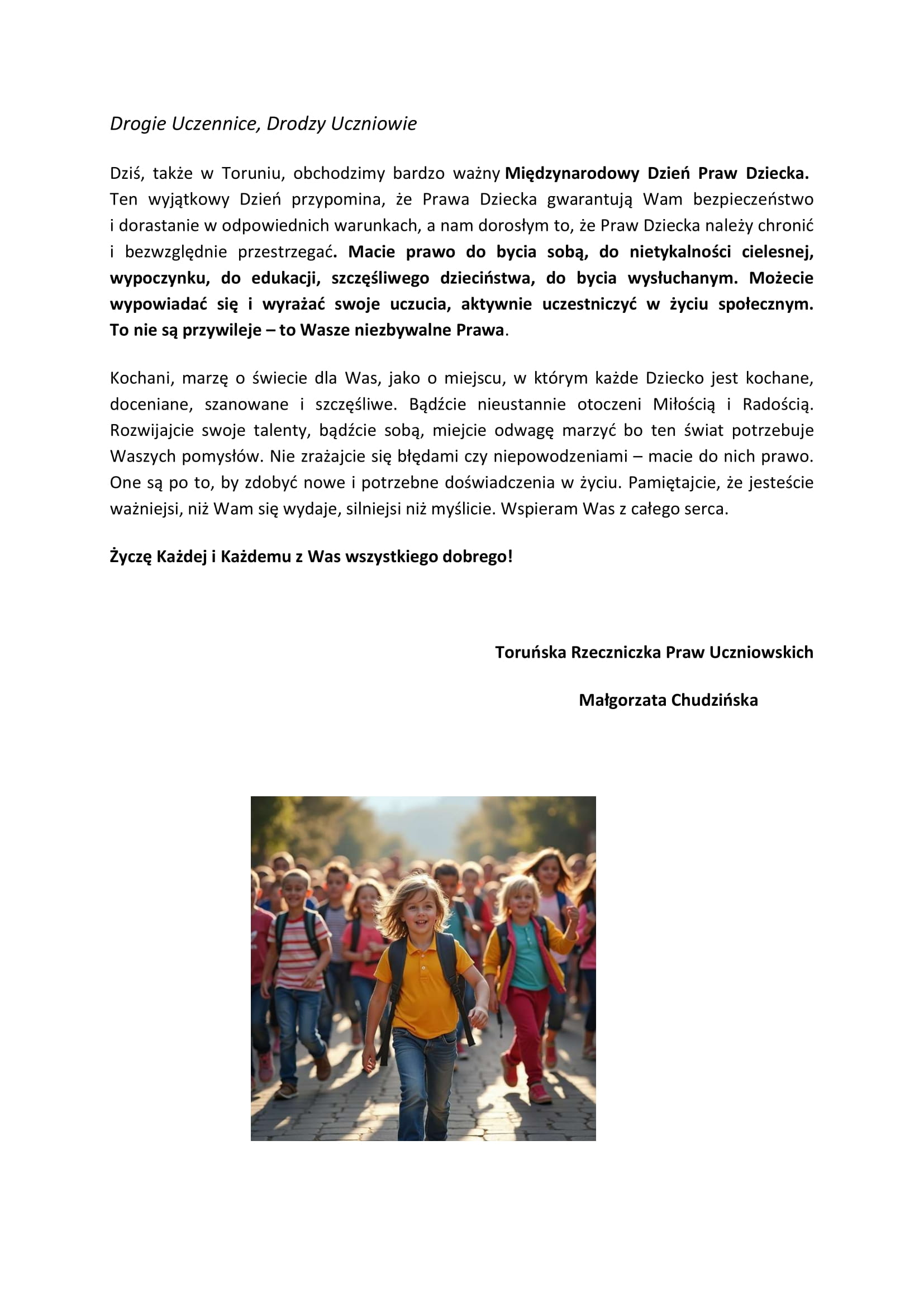 LIST TORUŃSKIEJ RZECZNICZKI PRAW UCZNIOWSKICH